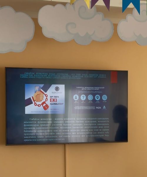 Заңгер Жарылғапов М.М. біздің балалар үйінің қызметкерлеріне арнап танымдық дәріс оқыды. Іс-шара барысында сыбайлас жемқорлыққа қарсы сананы қалыптастырудың және сыбайлас жемқорлықтың кез келген көріністеріне төзбеушіліктің маңызды аспектілері талқыланды.