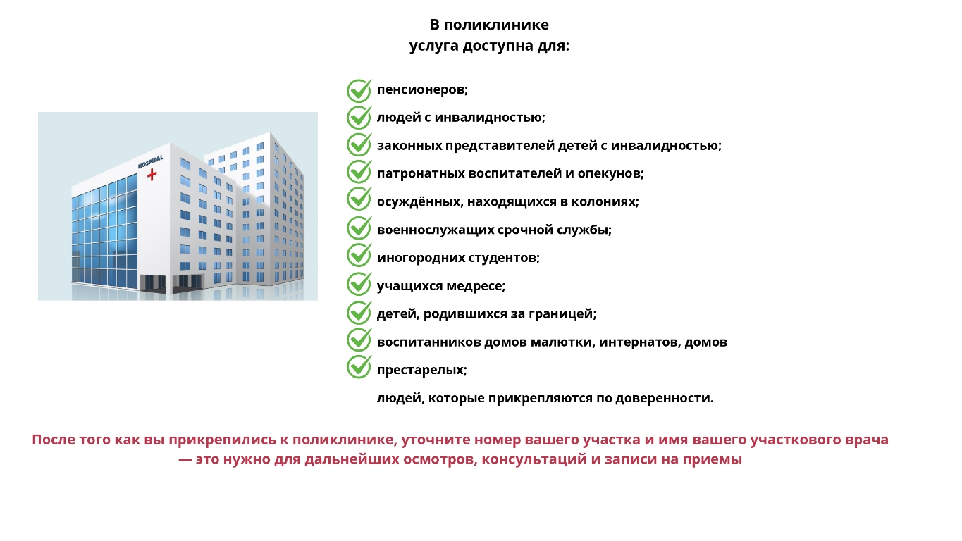 В самой поликлинике услуга доступна для: